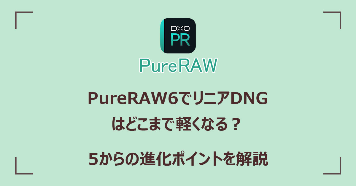 リニアDNGは、ファイルサイズが大きくなるという問題がありましたが、Pure RAW 6で改善しました。